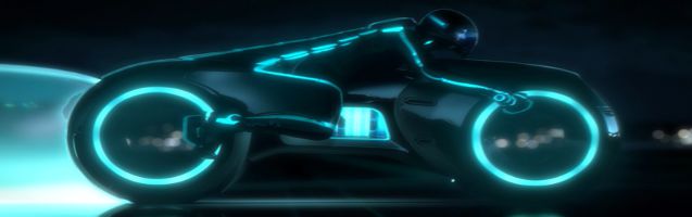 Lightcycle from Tron Legacy demonstrating a bloom effect. A technique achieved by blending a glowmap with the underlying image.