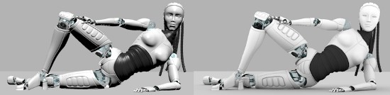 Left image rendered with standard diffuse lighting. Right image rendered with ambient occlusion.